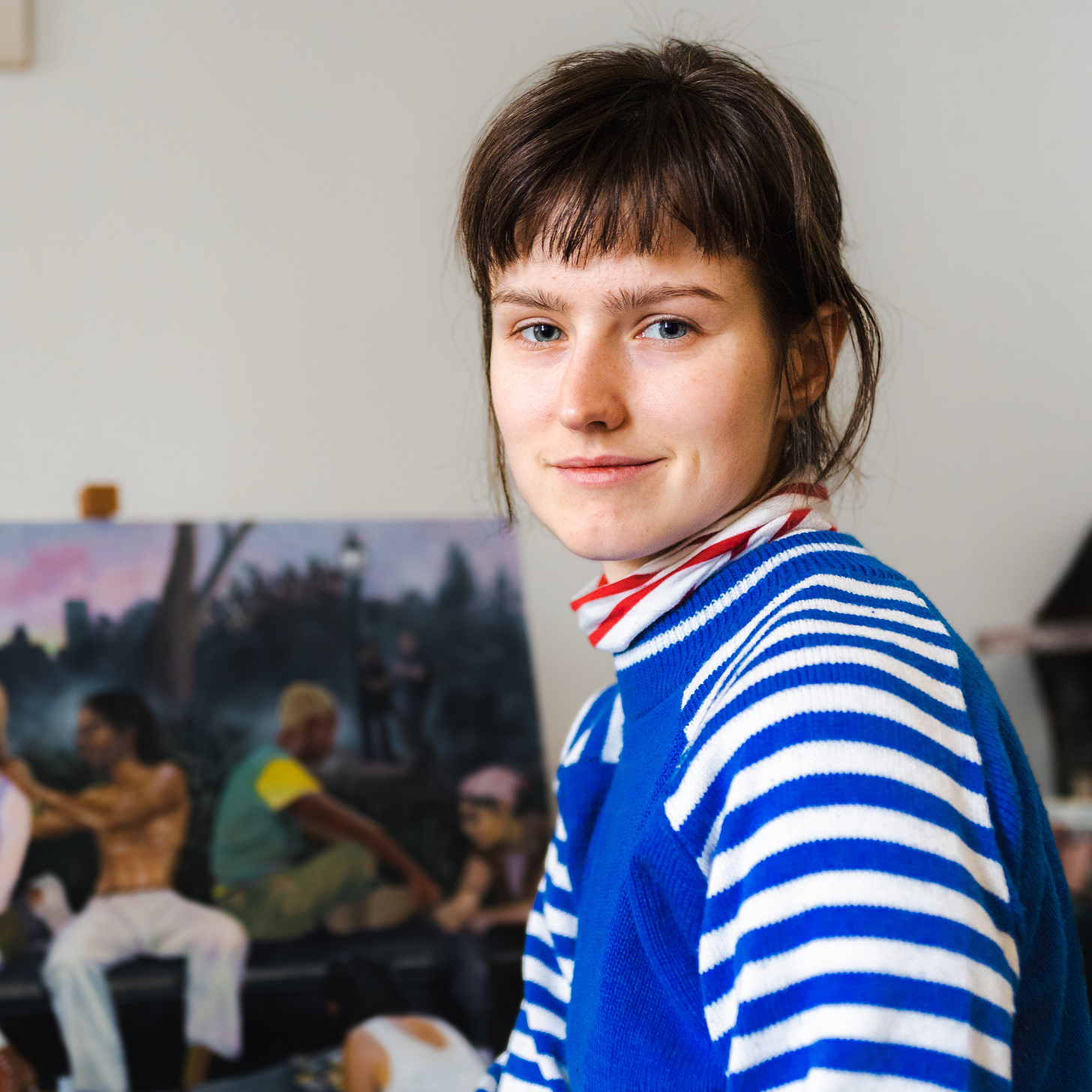 Taylor Morgan is a painter, illustrator, comic artist, barista, waitress, graphic designer, pet sitter, art teacher, studio assistant, and gallery attendant currently living and working in the Hudson Valley, originally from Brooklyn NY. Her work is mostly figurative and narrative driven, often focusing on themes from young adulthood, like friendship, anxiety and make-believe. She received her BFA from The School of the Art Institute of Chicago in 2019. Residencies include the Yale Summer School of Music and Art in Norfolk CT in 2018, and the Vermont Studio Center in 2020/22. Recent group shows include, “Freaky Flowers” in 2023 and “In The Pale Moonlight” 2024 at September Gallery in Kinderhook NY.